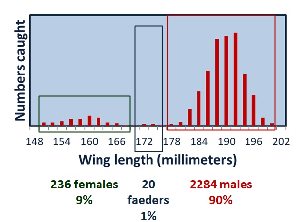 Still later, simply by measuring birds that were trapped for ringing, Joop Jukema discovered a third type of male (the faeder), looking like a female, somewhat bigger, but smaller than a male. Faeders are treated like females by other males. They visit leks and residences together with females and copulate in a hurry as soon as a real female invites a resident male for mating.