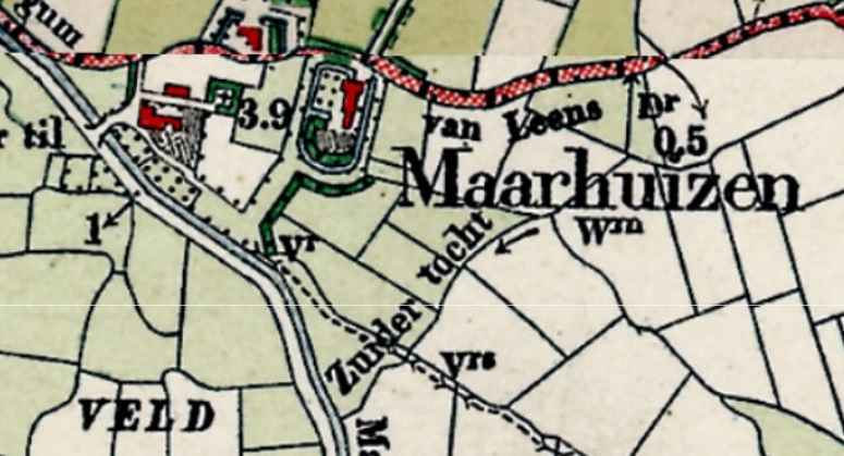 Maarhuizen in the topographic map from 1925 - CC-BY Kadaster 2015.